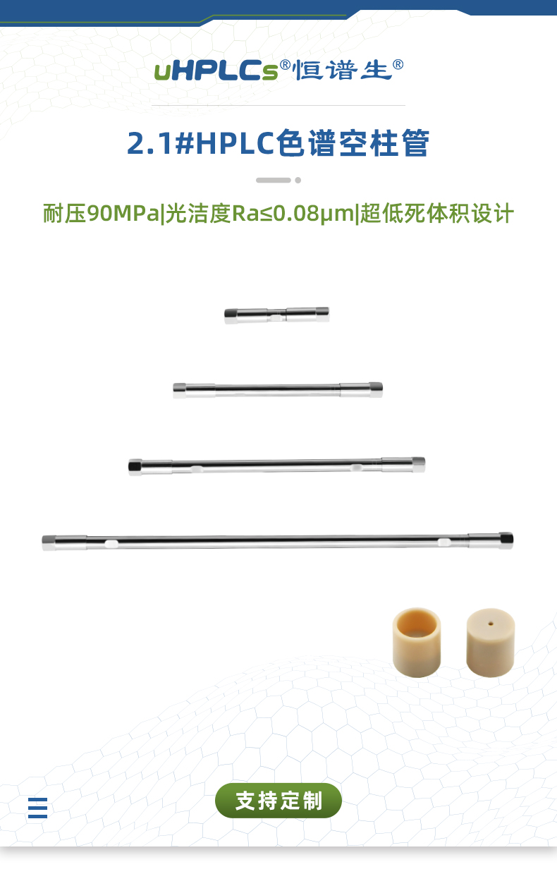 高性能色譜柱空柱,不僅能夠減少頻繁更換高效色譜柱帶來(lái)的重新進(jìn)行方法驗(yàn)證、條件摸索等工作,還大大的降低了使用成本。恒譜生提供種類繁多的HPLC和UHPLC色譜柱硬件,高光潔度高效色譜柱柱管能夠快速分析的同時(shí)保持高的柱效,是國(guó)外同類型柱管的理想替代品,是高品質(zhì)的色譜耗材。恒譜生的色譜柱硬件系列包括可增強(qiáng)色譜柱功能的保護(hù)附件和連接產(chǎn)品。