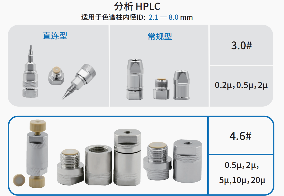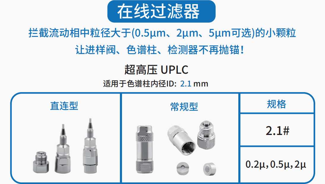 色譜柱入口過濾器直接安裝在色譜柱前,用于去除來自進樣系統(tǒng)和樣品的顆粒