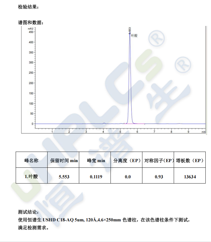 葉酸檢測液相色譜柱_葉酸分析色譜柱