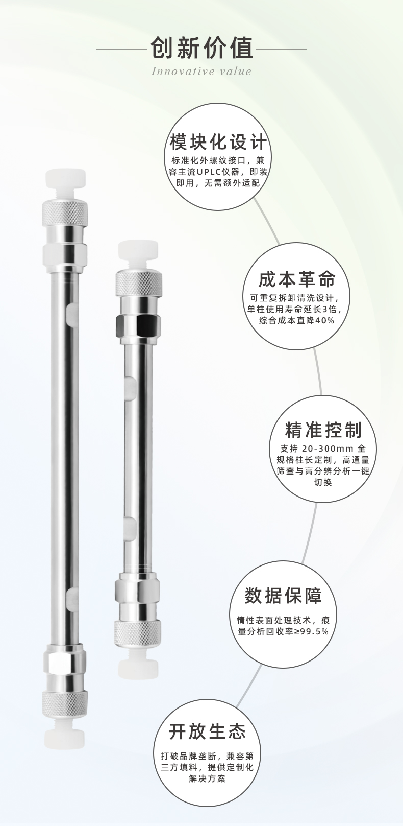 ● 聚四氟乙烯柱管:化學(xué)性質(zhì)穩(wěn)定,耐腐蝕性極佳,內(nèi)壁光滑,適合分析對金屬敏感的樣品。